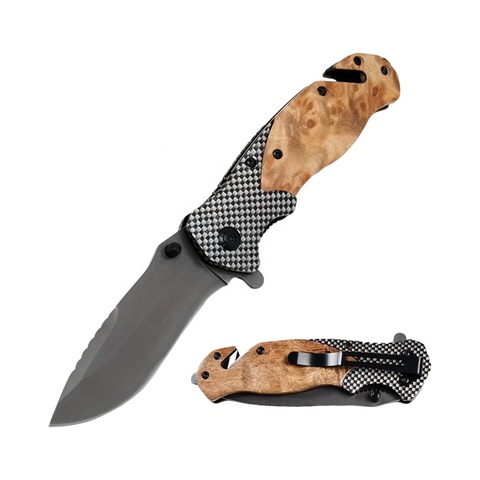 Cuchillo plegable personalizable de acero inoxidable con mango de madera Cuchillo de bolsillo de supervivencia al aire libre OEM para acampar y caminar